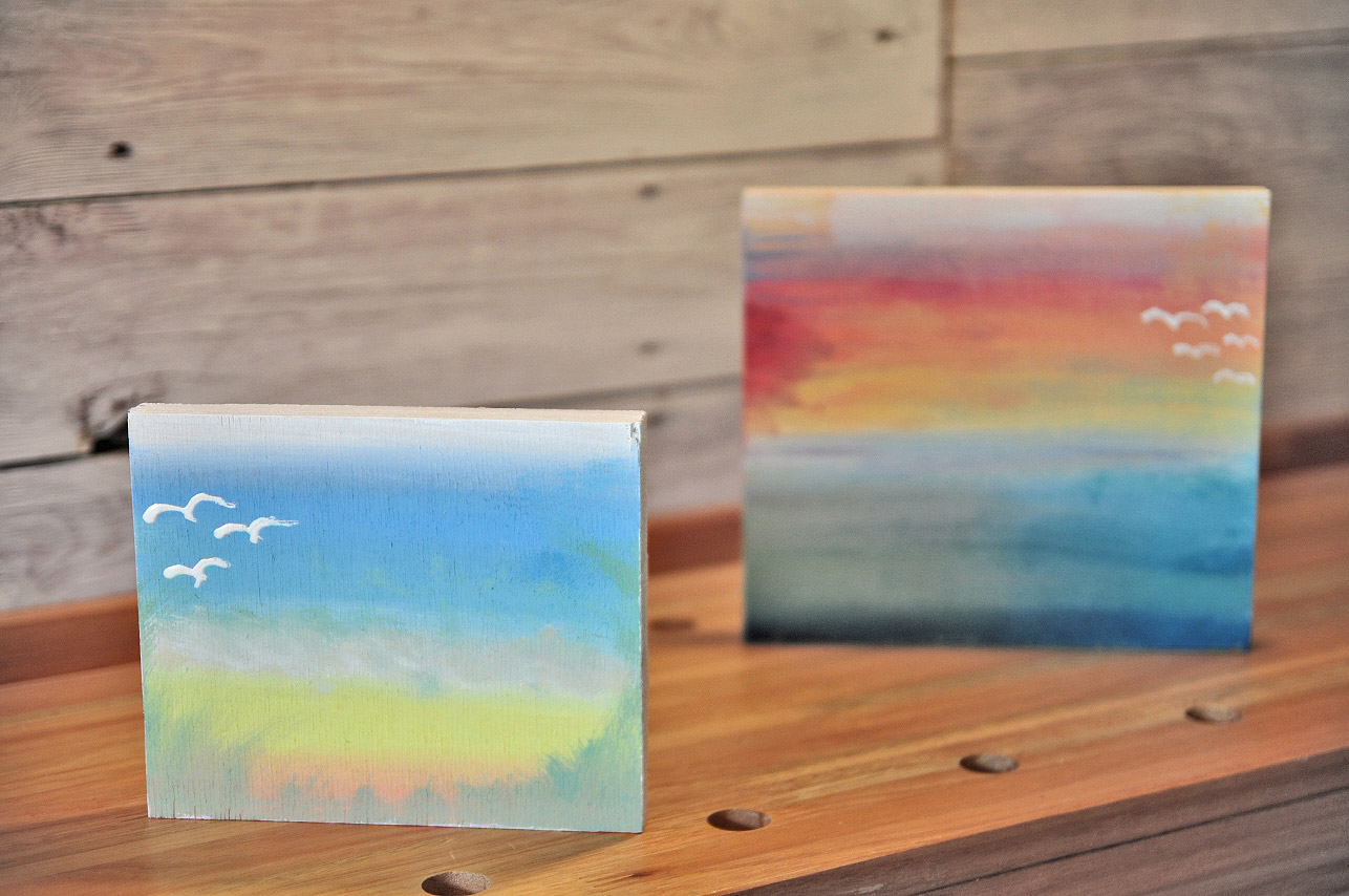 ...wykorzystując technikę "ombre", Asia stworzyła wakacyjne obrazki do dziewczęcych pokoi...
