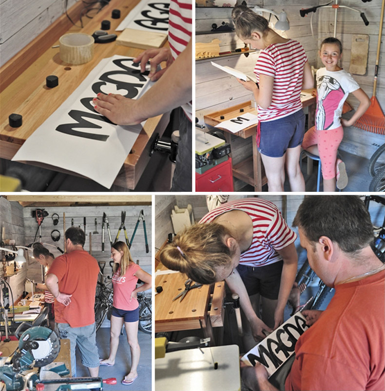 ...aby praca na wyrzynarce szła gładko, dziewczynki oklejały taśmą przygotowane i wydrukowane wcześniej litery (taki zabieg zapewnia smarowanie brzeszczotu, podczas pracy na wyrzynarce)